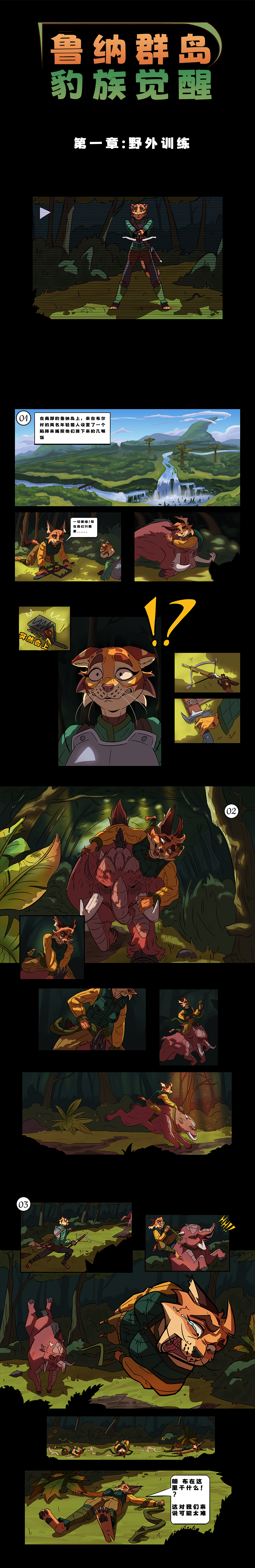 动漫内容:这个是一个构思在动物拟人化美术作品,通过构思各种动物宗族在鲁纳群岛发生的故事。其中故事以豹族为本作品的起始篇章,其中朗布和詹斯是豹族成员,在森林中进行狩猎活动,期间被巨型暴躁猛犸攻击,在千钧一发之际被一位“旅行浪者”所救,故事由此展开。